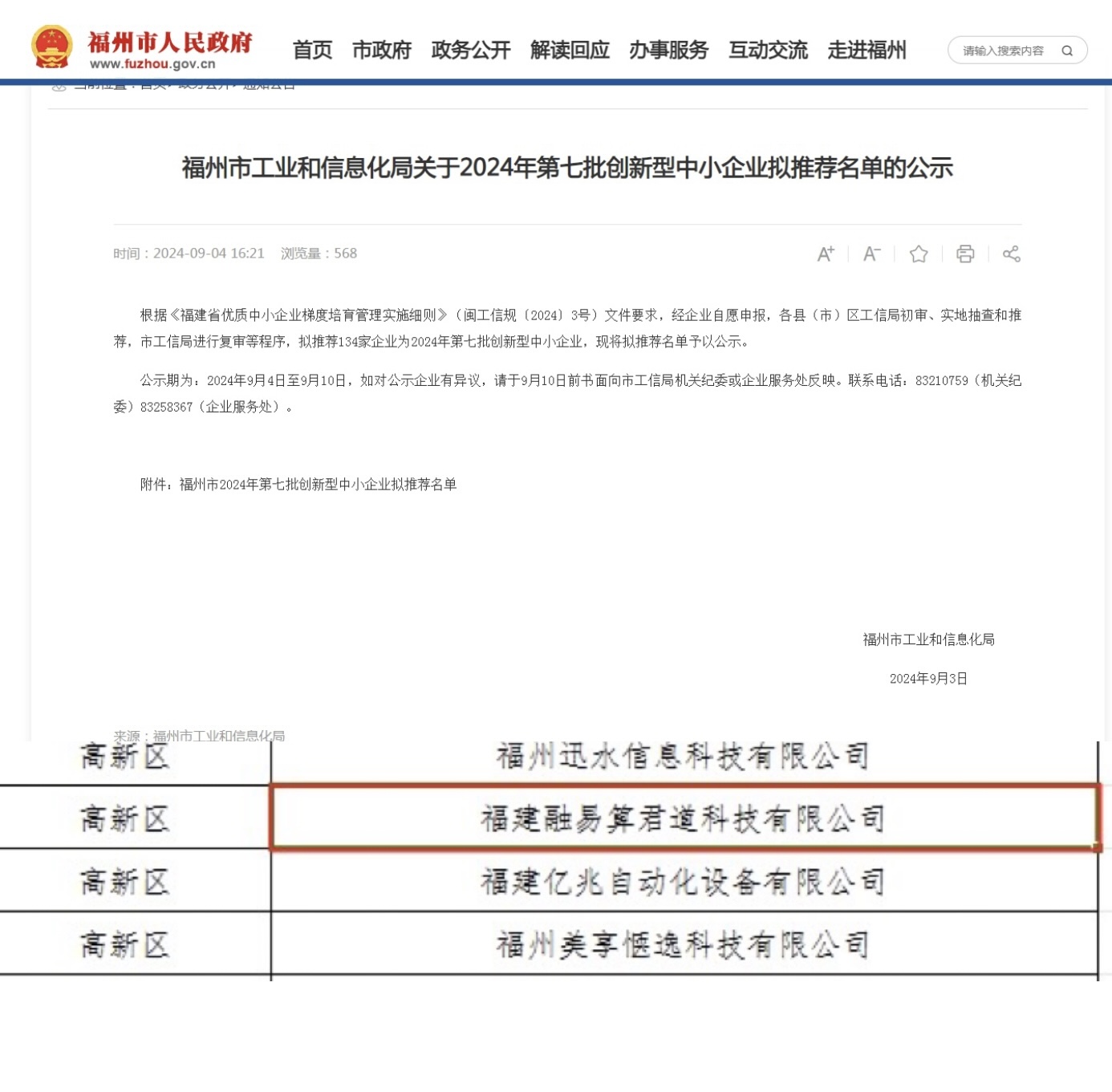 近日,福州市工業(yè)和信息化局發(fā)布了《關(guān)于 2024 年第七批創(chuàng)新型中小企業(yè)名單的公示》,同時福建省科學技術(shù)廳也公布了 2024 年第二批入庫科技型中小企業(yè)名單。君道控股集團旗下的投資公司 —— 福建融易算君道科技有限公司成功上榜“福州市?2024 年創(chuàng)新型中小企業(yè)”名單,并且被評定為“ 2024 年入庫科技型中小企業(yè)”。