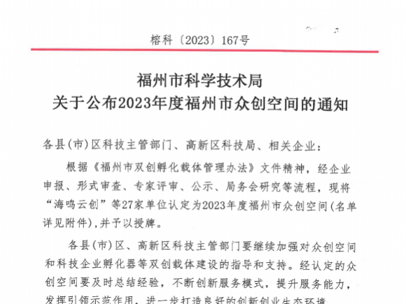 閱讀更多6月29日,福州市科學技術局發(fā)布了《關于公布2023年度福州市眾創(chuàng)空間的通知》,27家單位被認定為2023年度…